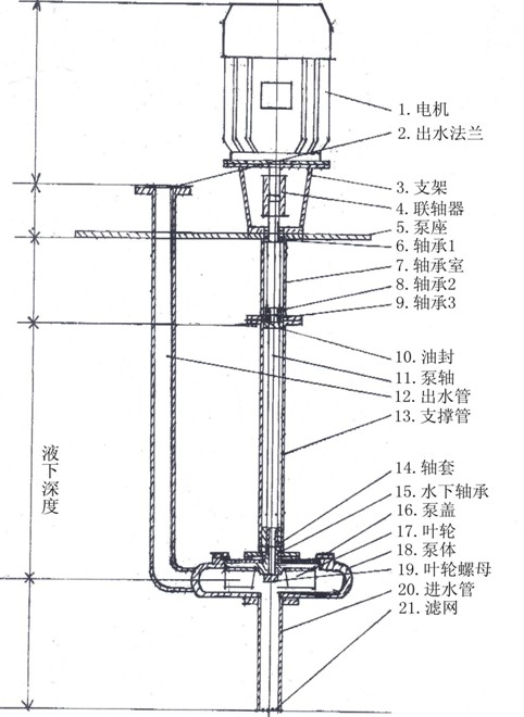 (2)泵要垂直安裝并固定牢靠,出水管道不能依靠泵體固定,管道要有自己獨立的支撐系統(tǒng)。