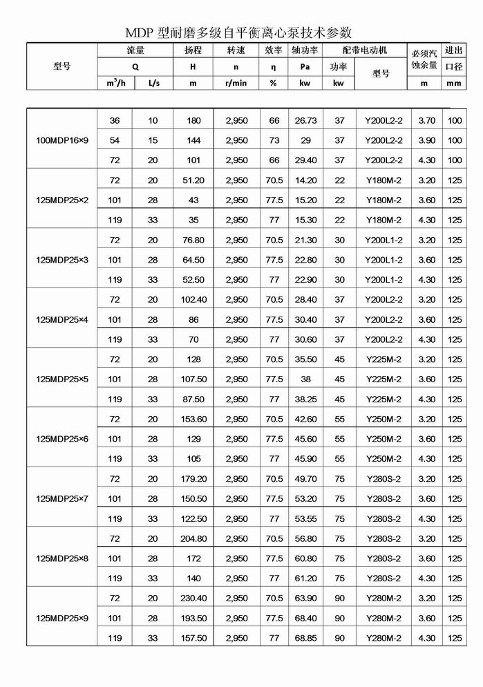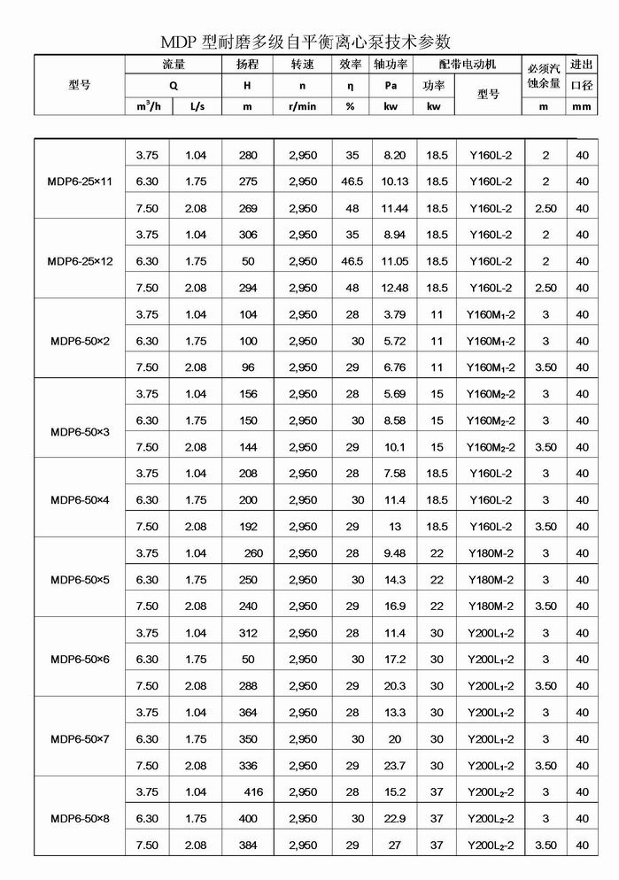 MD(P)平衡型煤礦用耐磨多級離心泵是我公司在引進(jìn)、消化、吸收先進(jìn)技術(shù)基礎(chǔ)上研制開發(fā)成功的,該產(chǎn)品不僅效率高、汽蝕性能好、關(guān)鍵是運(yùn)行平穩(wěn)可靠。適用于煤碳,礦山、工廠及其它場合輸送固體顆粒含量不大于1.5%(粒徑小于0.5mm)、溫度不大于40℃的中性礦井水和其它類似的污水。