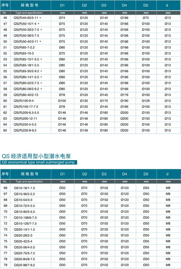 QS型經(jīng)濟(jì)適用性小型潛水泵: